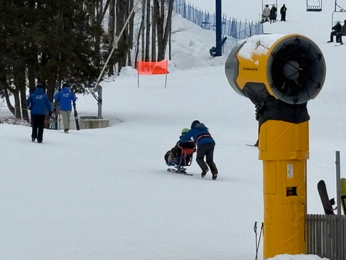À peine arrivé à ma station refuge d’Owl’s Head, la vue des bénévoles du programme de ski adapté veillant sur l’un des 3 participants présents aura tôt fait de me réconcilier avec la vie devenue trop souvent toxique face aux élans d’un narcissique président américain de plus en plus psychopathe.